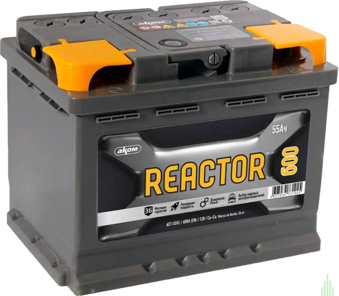 - Аккумулятор AKOM REACTOR 6СТ-55 (55 А/Ч, 600 А)