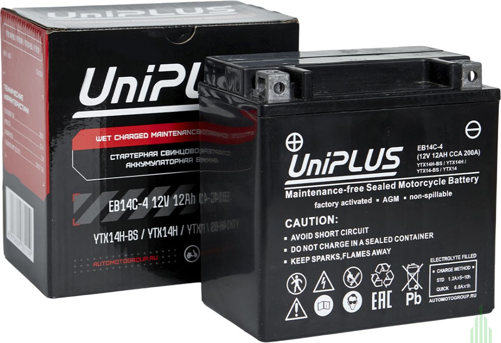 - Аккумулятор UNIPLUS AGM EB14C-4 (12 AH) YTX14