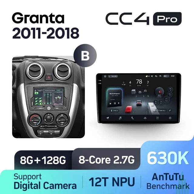 - Штатная автомагнитола на Android TEYES CC4 Pro для Lada Granta Sport 2011-2018 (Версия B) 8/128gb